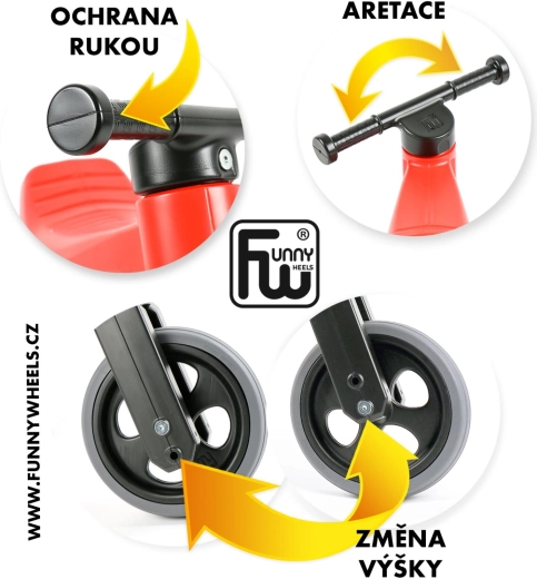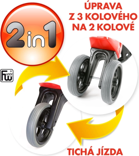 De originele Tsjechische loopfiets FUNNY WHEELS Rider Sport is ontworpen om kinderen te helpen bij hun eerste stappen richting fietsen. Dankzij het 2-in-1 systeem zet je hem in enkele minuten om van een driewieler naar een tweewieler en met de twee zadelstanden (verschil 3 cm) past hij in verschillende groeifases.