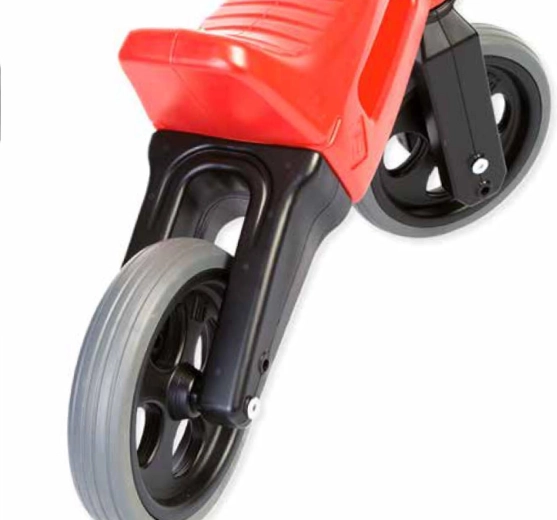 De loopfiets heeft stille banden met antislip, een gladde en veilige afwerking van duurzaam, onschadelijk kunststof en een begrensde draaihoek van de voorvork, waardoor het stuur niet kan omklappen. Kinderen trainen spelenderwijs hun balans, coördinatie en motoriek en hebben thuis én buiten veel plezier.
