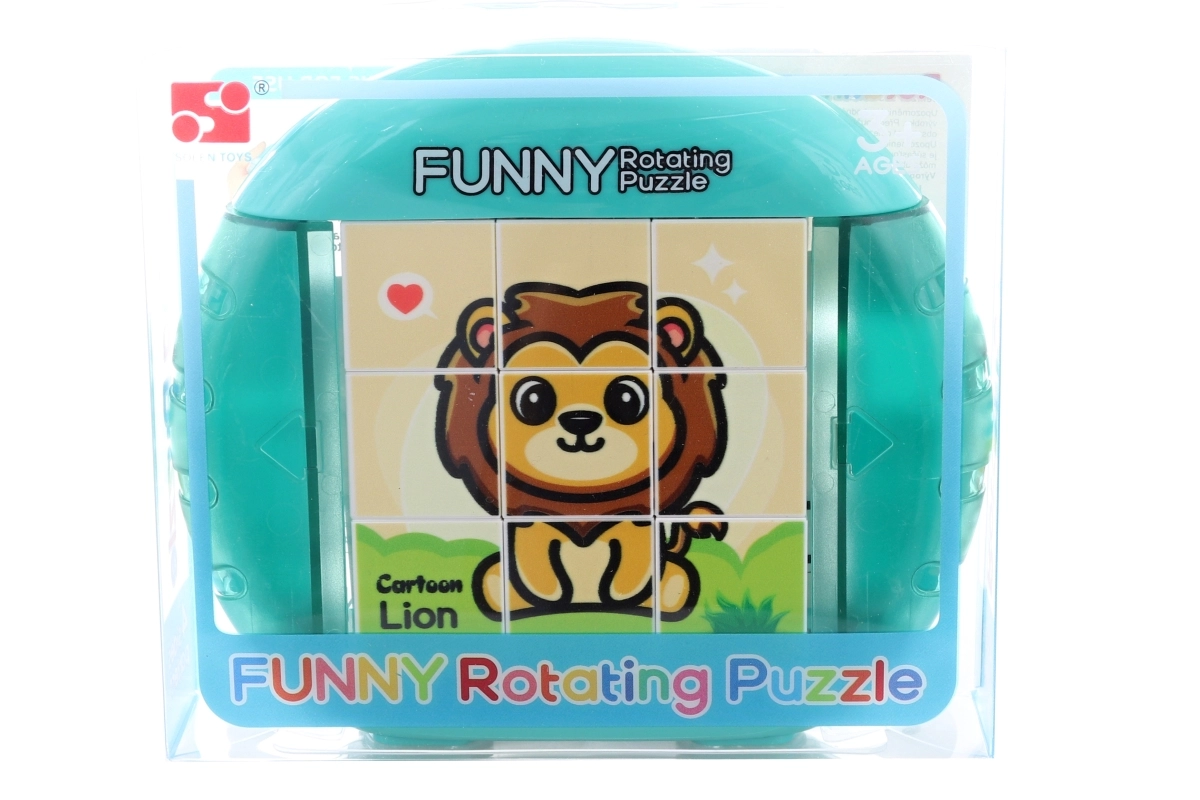 Deze kleurrijke draaiende puzzel verbindt spel en leren. Door de stukjes te draaien en te schuiven leggen kinderen schattige dierenafbeeldingen, zoals een leeuw of zebra. Duurzaam kunststof en een overzichtelijk ontwerp zorgen voor comfortabel en veilig gebruik, ook voor kleine handjes.