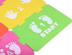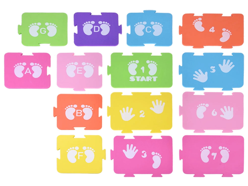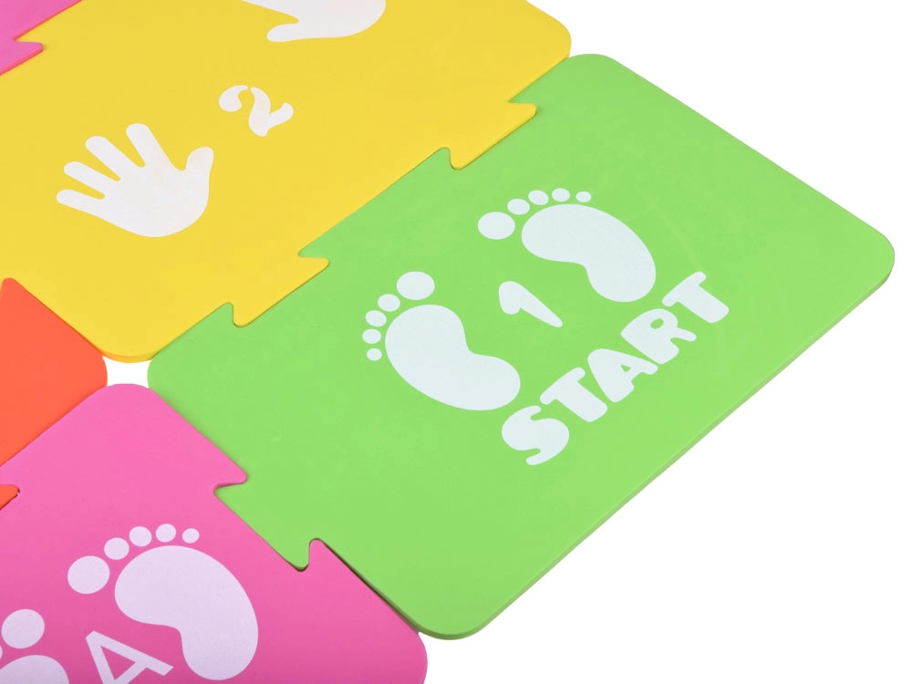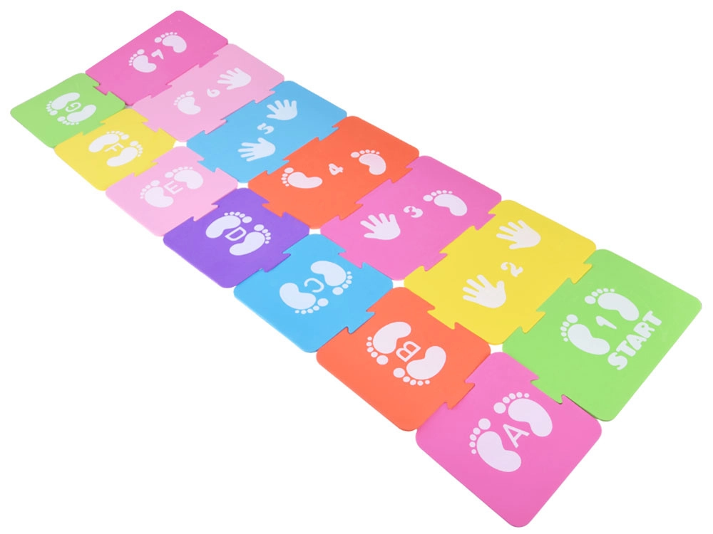 Dit actieve spel is perfect voor grotere groepen en gezellige middagen met het gezin. Het doel is uitdagingen te volbrengen volgens een bewegingsschema: handen en voeten op de aangegeven vakken plaatsen en vooruitgaan zonder andere oppervlakken te raken. Dankzij het zachte, antislipoppervlak zijn kinderen veilig en leren ze tegelijkertijd kleuren, letters en cijfers.