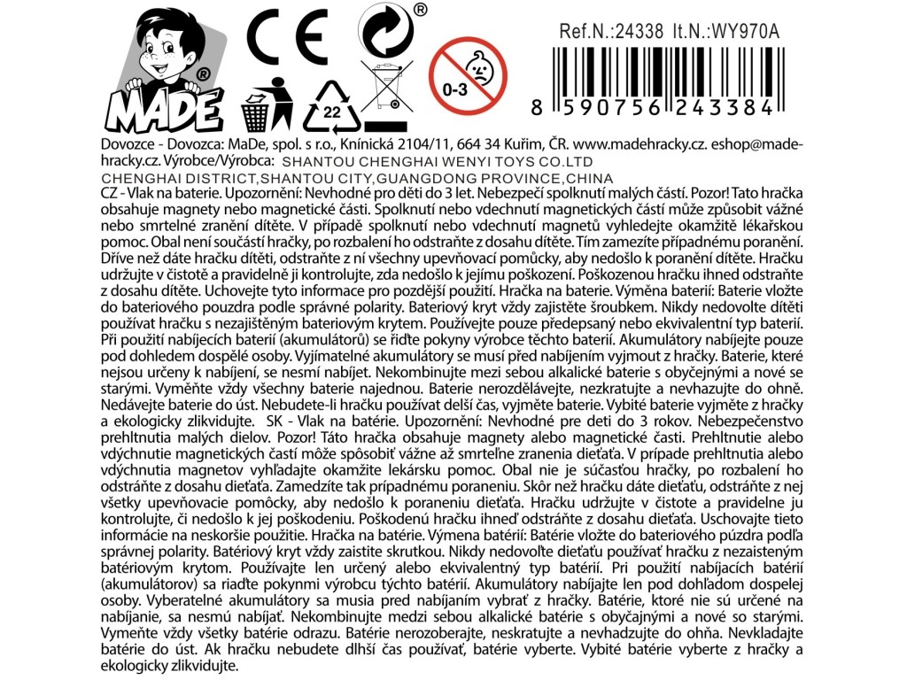 Twee scharnierend gekoppelde rijtuigen met vrijlopende wielen maken een soepele rit mogelijk op vlakke oppervlakken en kindertreinenbanen. Dankzij het duurzame kunststof en de voeding via 3× AG13 is het speelgoed klaar voor langdurig spelen. Ideaal voor kleine treinliefhebbers die graag de wereld van het spoor ontdekken en hun verbeelding ontwikkelen.