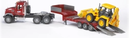 Een imposante bouwset van BRUDER combineert de realistische trekker MACK met oplegger en de iconische graaflaadmachine JCB 4CX. Kinderen zullen genieten van de openende deuren, de kantelbare motorkap en de zachte banden voor een soepele rit. Hoogwaardige afwerking van duurzaam kunststof in schaal 1:16, gemaakt in Duitsland, ideaal voor realistisch bouwspel vanaf 3 jaar.