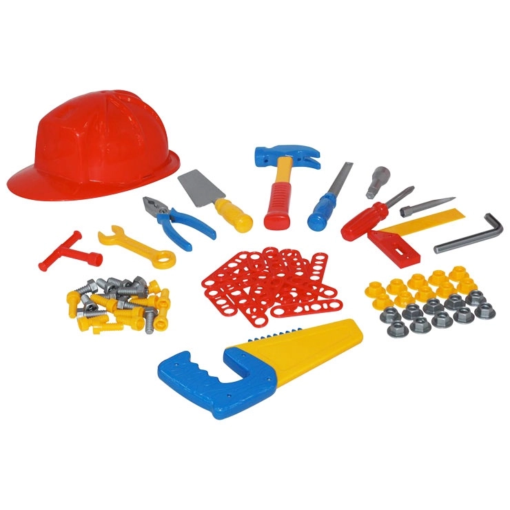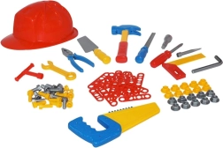 Deze rijk uitgeruste gereedschapsset biedt kinderen een veilige en leuke manier om het werk van volwassenen na te bootsen. De diverse onderdelen stimuleren vingervaardigheid, bewegingsnauwkeurigheid en logisch denken bij het verbinden van de afzonderlijke elementen. Dankzij de helm en het brede palet aan gereedschap beleven kinderen realistisch rollenspel als vakmensen.