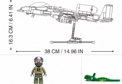 De Sluban Model Bricks A-10CS bouwset brengt een gedetailleerd aanvalsvliegtuig, geïnspireerd op echte gevechtsmachines. De robuuste constructie met dubbele achterste motoren, correcte verhoudingen en transparante cockpit geven het model een authentieke uitstraling. Dankzij de variabele ondervleugelse bewapening maak je eenvoudig je eigen configuratie.