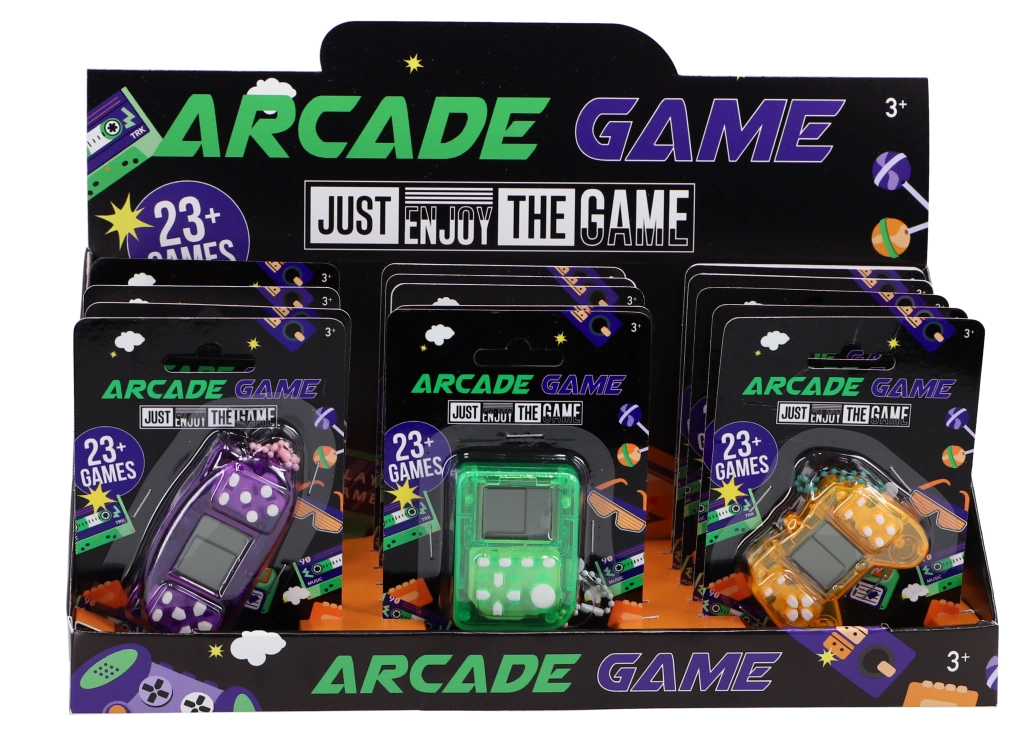 De draagbare BRICKGAME-console brengt klassieke arcadepret altijd en overal. Biedt meer dan 23 games, eenvoudige bediening en een licht, draagbaar design in drie kleurvarianten – oranje, groen en paars.