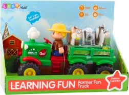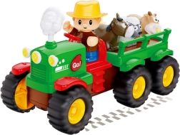 Een kleurrijke interactieve tractor met aanhanger en figuurtjes van dieren en een boer biedt kinderen vanaf 3 jaar urenlang speelplezier én leren. Met licht- en geluidseffecten, magnetische sensoren, een bewegende schoorsteen en schommelende dieren tijdens het rijden. Stimuleert uitstekend de motoriek, het logisch denken en creatief boerderijspel.