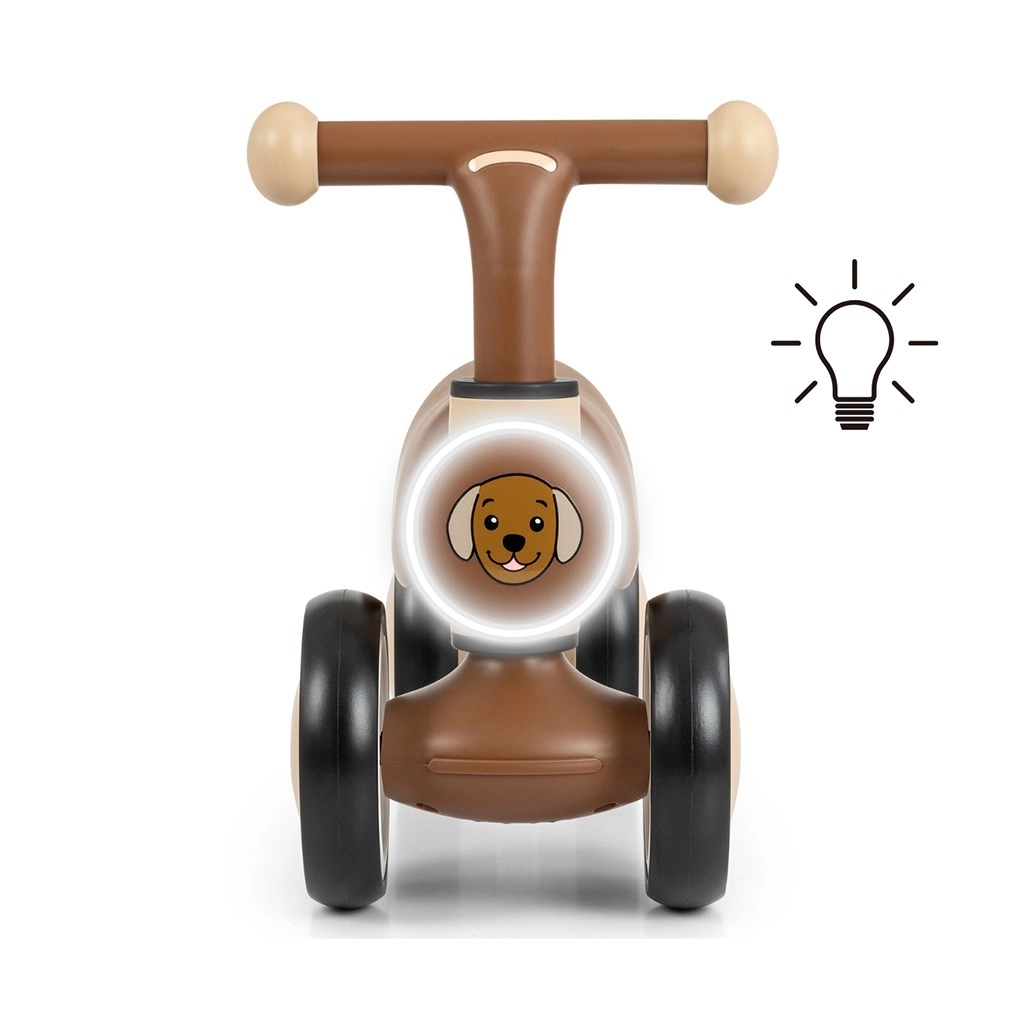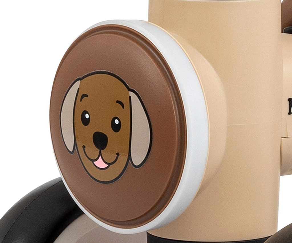 Stijlvolle kinderloopfiets MILLY MALLY York in beige is het ideale eerste voertuigje voor de allerkleinsten. Biedt een stabiele vierwielige constructie, een zachte zadel en een licht frame voor gemakkelijk sturen. De voorste LED-lamp en geluidseffecten zorgen voor plezier en veiligheid, terwijl slijtvaste EVA-wieltjes voor een stille en soepele rit zorgen, zowel binnen als buiten.