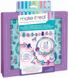 De set bevat materiaal voor het maken van drie stijlvolle armbanden in blauw‑paarse tinten – ideaal om te delen met vriendinnen of om samen te stapelen om je pols.