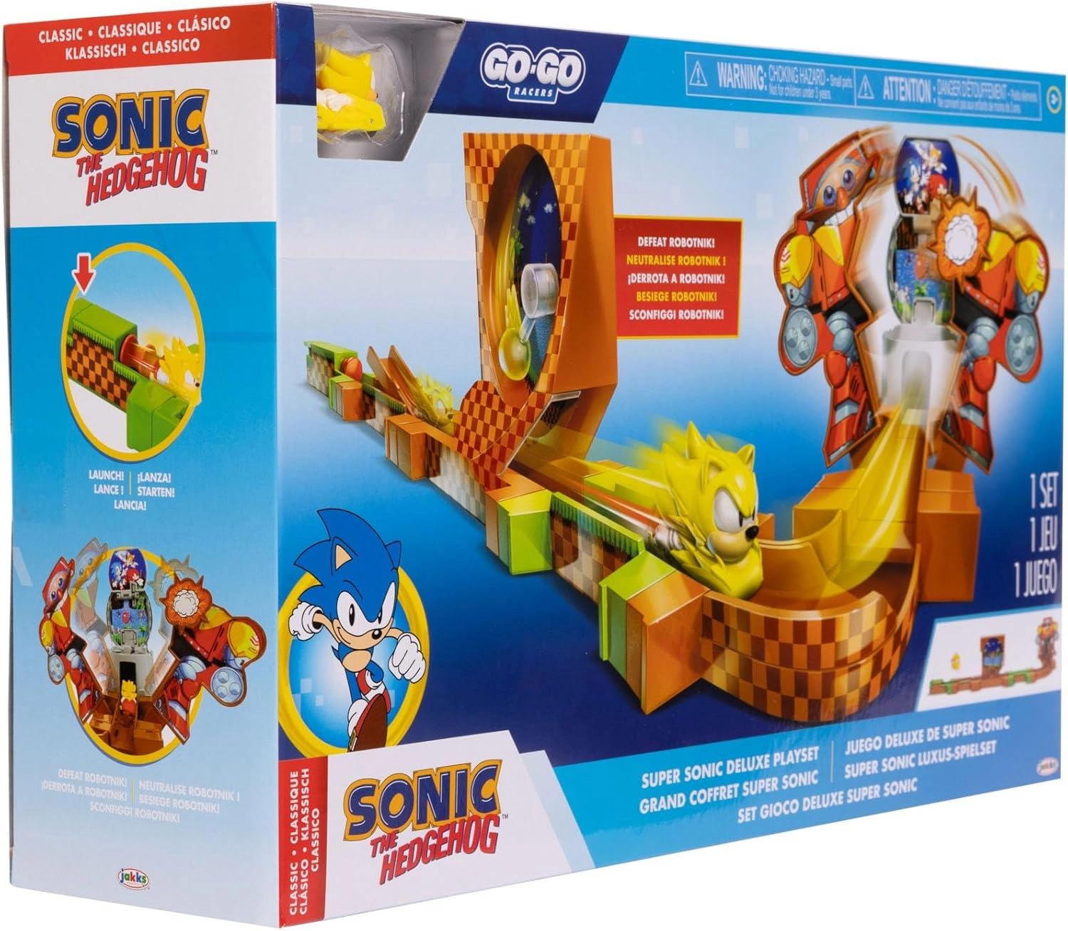 De racebaan, geïnspireerd door de SONIC THE HEDGEHOG-games van Jakks Pacific, brengt de dynamiek van videogames naar de kinderkamer. De baan biedt een iconische loop, ramps en een finishhindernis met Dr. Eggman die SONIC moet verslaan.