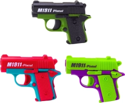 De mini speelpistool is ontworpen om een echt model realistisch te benaderen, maar blijft volledig veilig voor kinderen. Het magazijn met een capaciteit van 8 patronen zorgt voor langer, soepel spel zonder vaak te hoeven herladen. Dankzij de lichte constructie en de ergonomische handgreep ligt hij ook voor kleinere kinderen comfortabel in de hand.