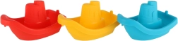 De set bevat 3 bootjes in primaire kleuren die kinderen makkelijk onderscheiden en combineren in spelletjes in water en zand.