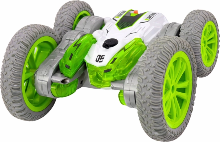 Deze op afstand bestuurde stuntauto levert dynamisch rijden, 360° rotaties en rijden vooruit/achteruit en zijwaarts. Dankzij de dubbele carrosserie kan hij op beide zijden rijden en na flips zonder pauze doorgaan. Geïntegreerde LED's samen met het verlichte mist-effect creëren een aantrekkelijke “rook”-trail die elke trick versterkt.