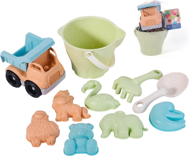 De ecologische WOOPIE GREEN zandset biedt kinderen volop mogelijkheden om te creëren en de buitenwereld te ontdekken. Het pastelkleurige design is een lust voor het oog, terwijl de duurzame materialen gemakkelijk te reinigen zijn en dagelijks spelen aankunnen. De set bevat ook een robuuste kiepwagen voor het vervoeren van zand en schatten.