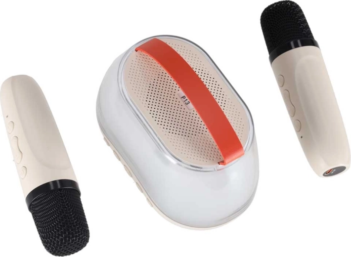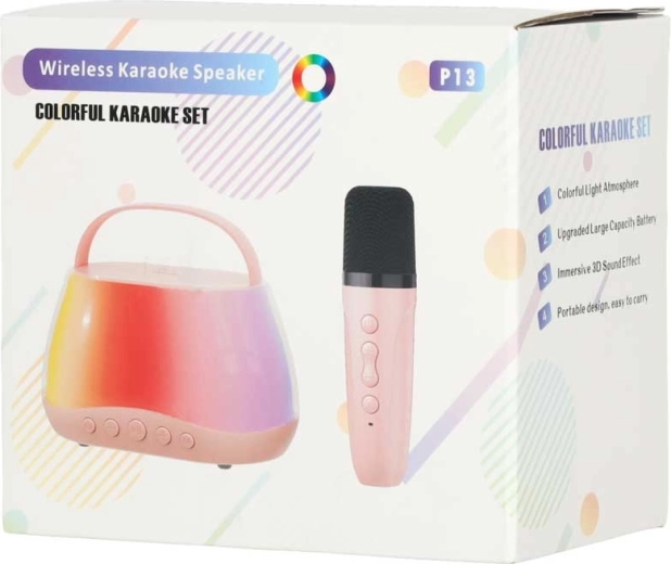 Verander elke party in een home-show. Deze compacte karaokeset biedt een draadloze luidspreker met Bluetooth, 2 microfoons en RGB LED-verlichting voor een geweldige sfeer. Geniet van stabiel geluid, eenvoudige verbinding via USB/TF/AUX en lange batterijduur – ideaal voor thuis en onderweg.