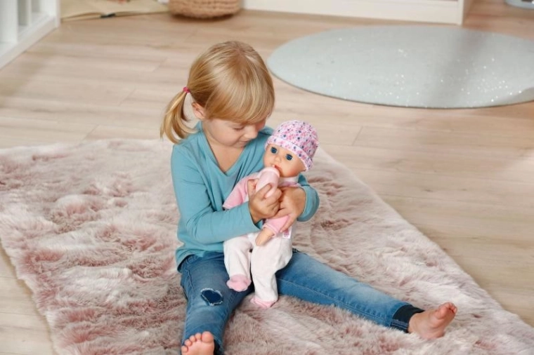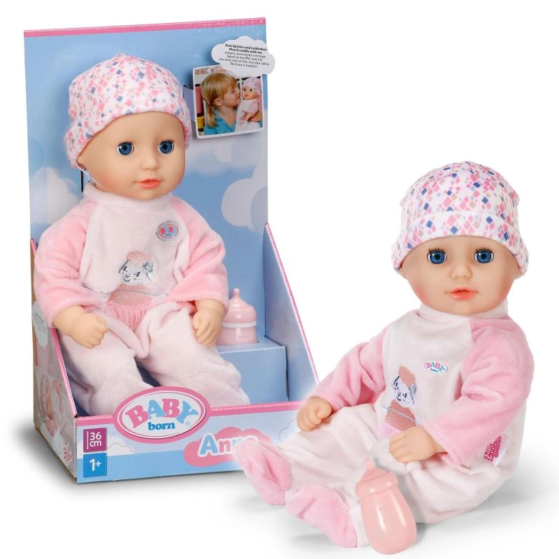De schattige pop BABY born Anna 36 cm is het ideale eerste vriendinnetje voor de allerkleinsten. Ze heeft een zacht stoffen lijfje om mee te knuffelen, slaapogen voor realistisch spel en wordt geleverd met een flesje, rompertje en een bijpassend mutsje. Dankzij het compacte formaat ligt ze goed in kleine handjes en stimuleert ze de fijne motoriek en verzorgend rollenspel.