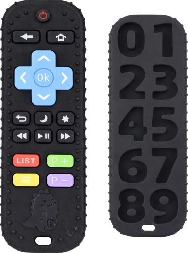 Sensorische babyafstandsbediening – rubberen bijtring met cijfers, zwart
