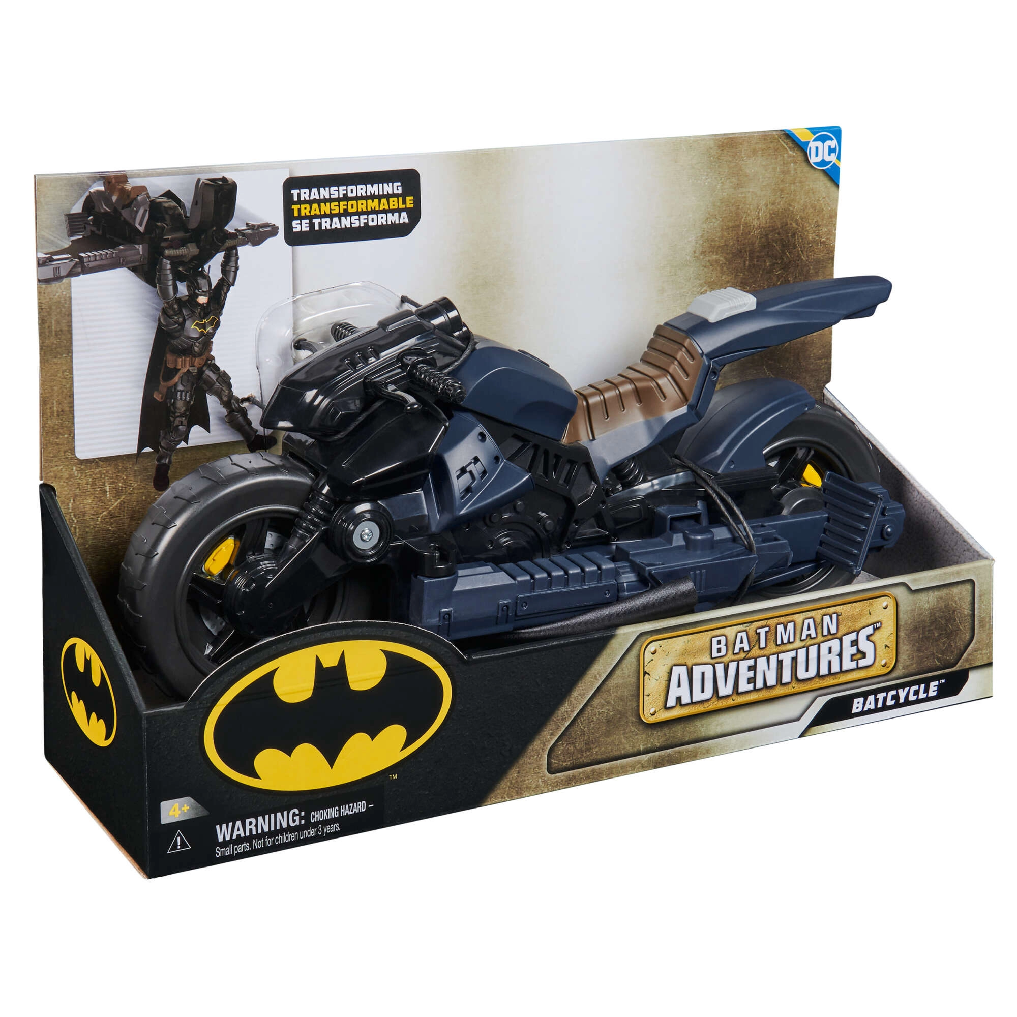 Maak je klaar voor een actievol avontuur met de Batcycle – een robuuste motor in zwart-blauwe kleurstelling voor DC COMICS-figuren van 30 cm. Dankzij de grote vrij draaiende wielen, de mogelijkheid om een figuur op het zadel te zetten en het slimme transformatie­mechanisme naar een glider met één knop beleven kinderen uren creatief speelplezier. Figuur niet inbegrepen.