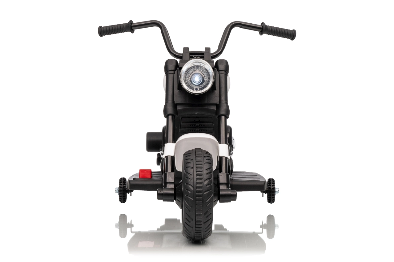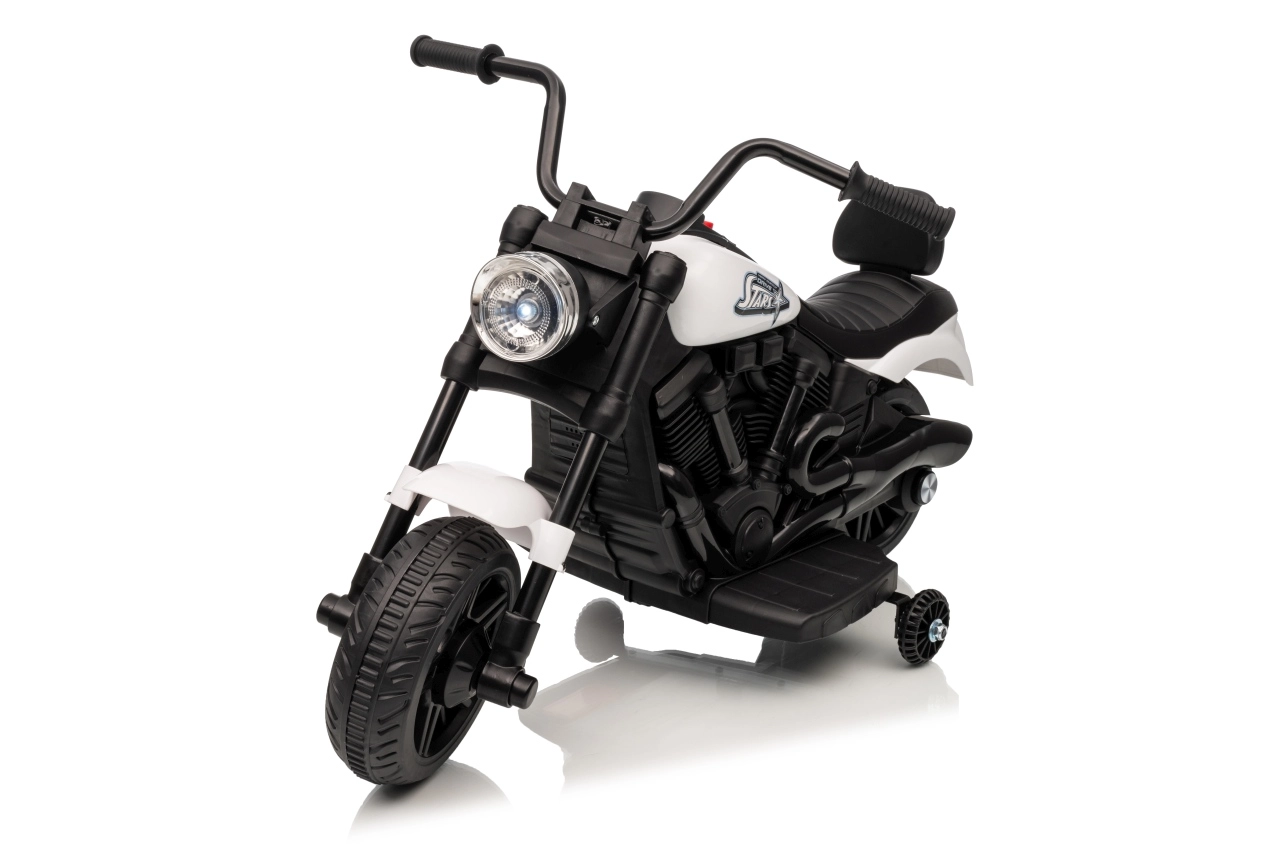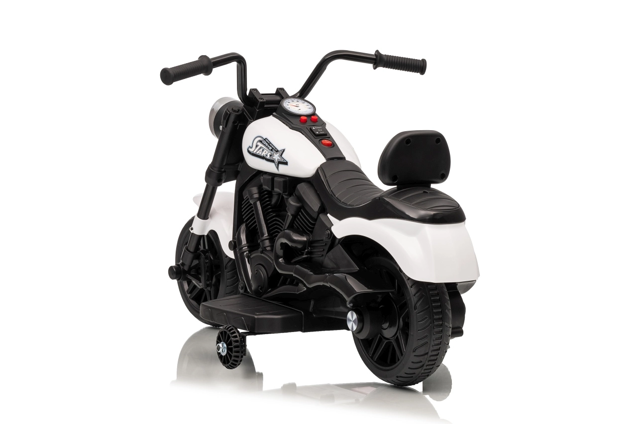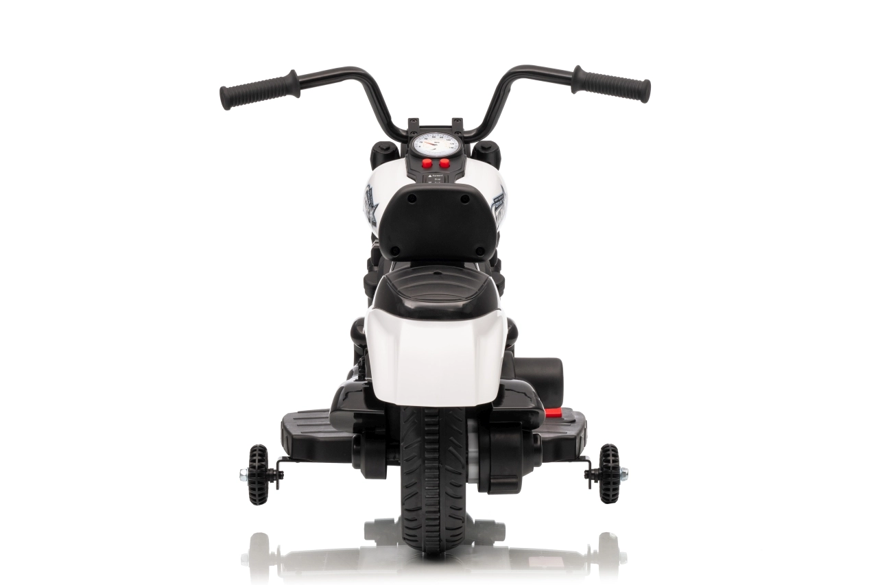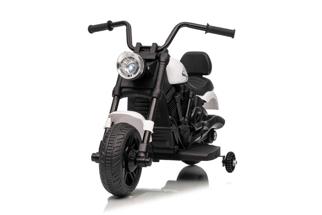 Stijlvolle elektrische kindermotor in het wit voor veilige pret voor kleine rijders. Dankzij de 30W motor, 6V 4,5 Ah accu, stabiliserende zijwieltjes en voorste LED-koplamp genieten kinderen van ritjes binnen en buiten. De comfortabele zitting en geleidelijke start zorgen voor comfort en zekerheid bij de eerste ritjes.