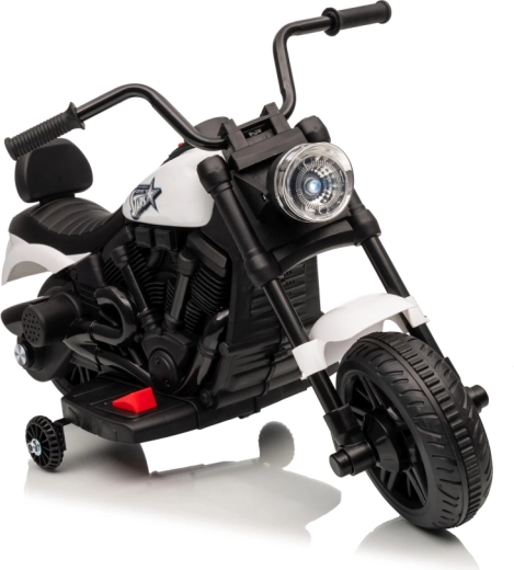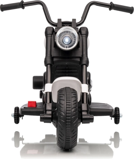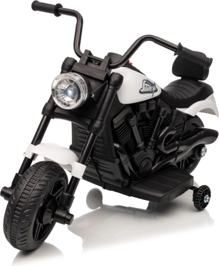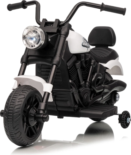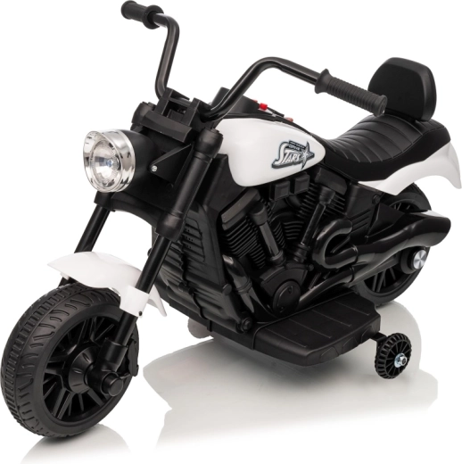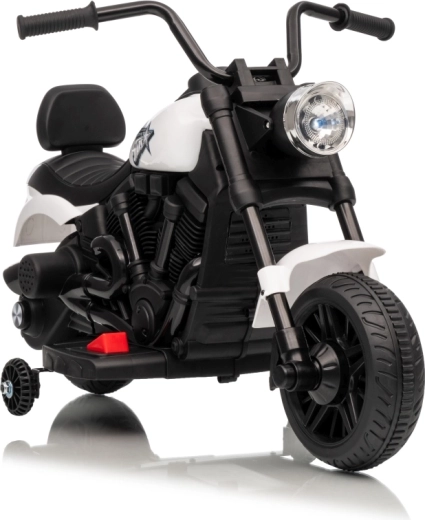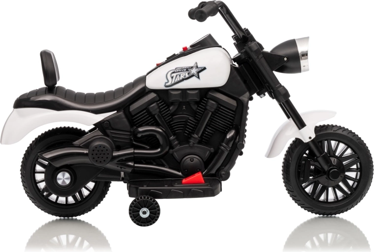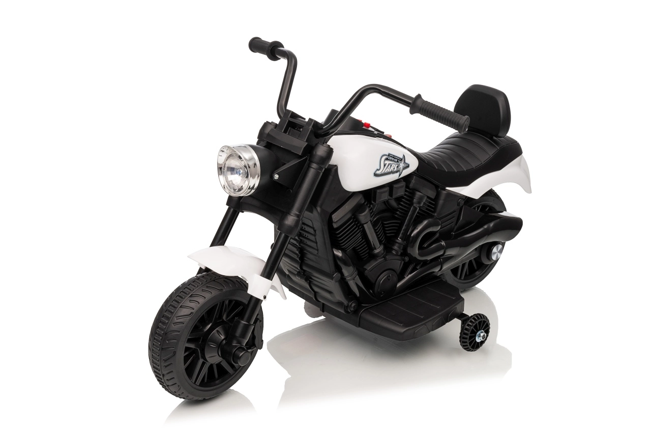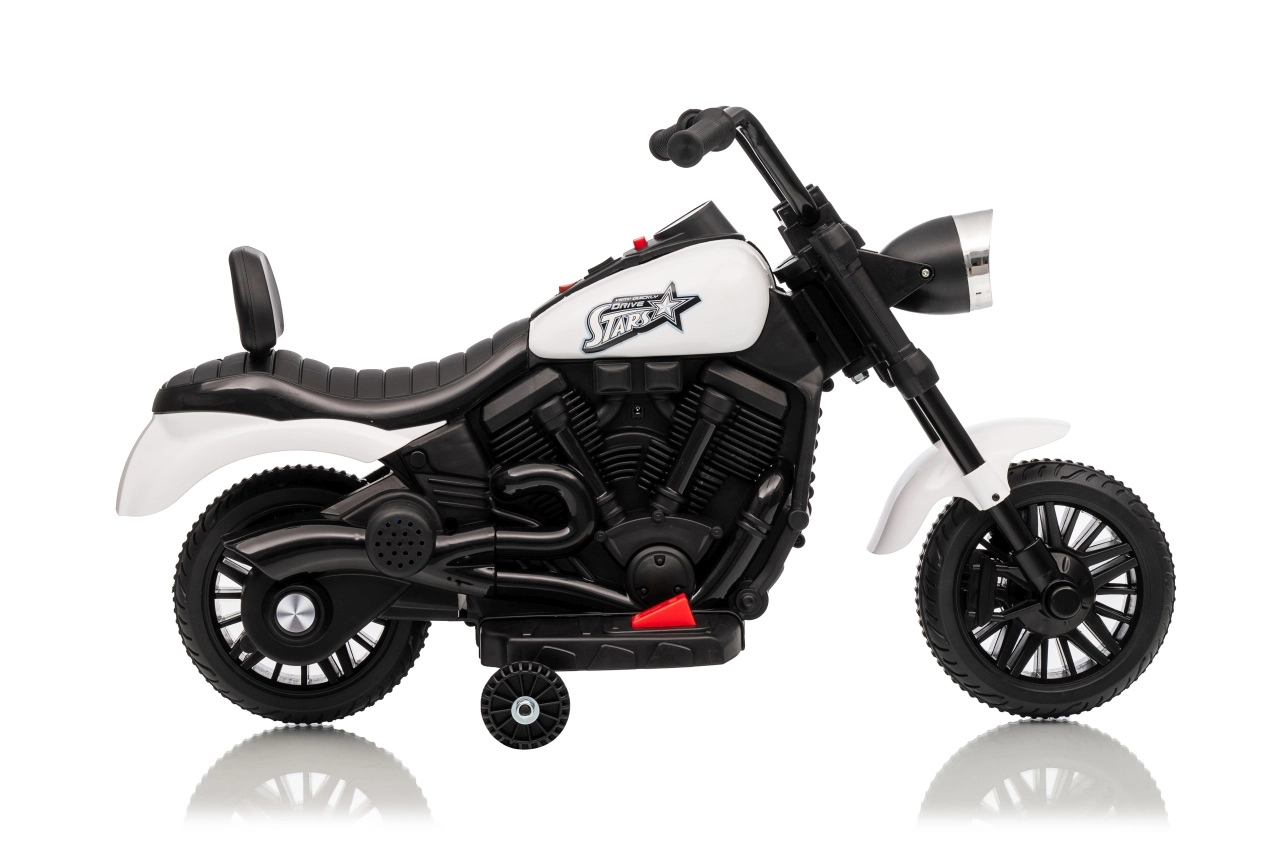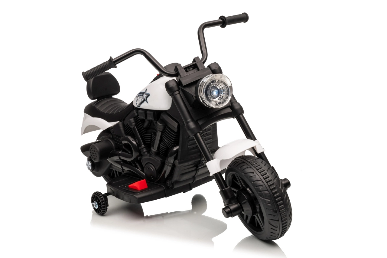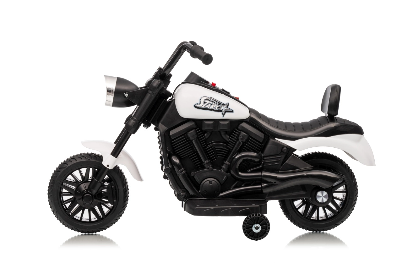 Stijlvolle elektrische kindermotor in het wit voor veilige pret voor kleine rijders. Dankzij de 30W motor, 6V 4,5 Ah accu, stabiliserende zijwieltjes en voorste LED-koplamp genieten kinderen van ritjes binnen en buiten. De comfortabele zitting en geleidelijke start zorgen voor comfort en zekerheid bij de eerste ritjes.