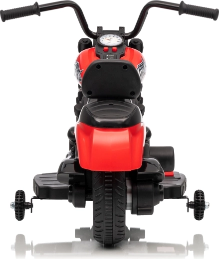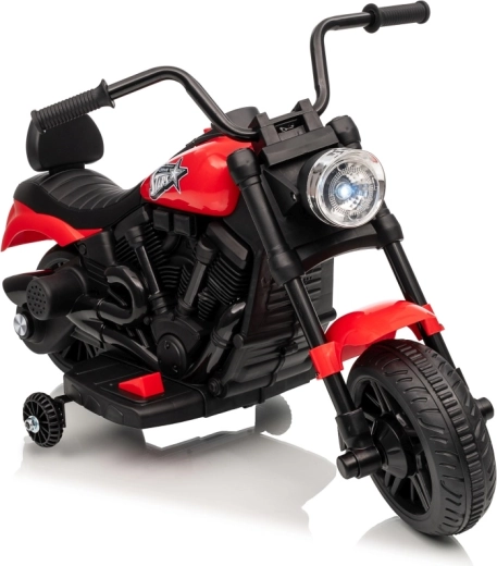 Stijlvolle elektrische kinder motor STAR in het rood biedt veilige pret voor jonge rijders. Voorzien van een 30 W motor, 6 V 4,5 Ah accu, langzame start voor een soepele wegrit, voor- en achteruit rijden en een voorste LED-koplamp. Zijwieltjes zorgen voor stabiliteit en het gevormde zadel met rugsteun biedt comfort.