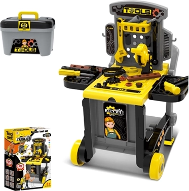 Ontdek een leuke en praktische speelgoedset voor kleine doe-het-zelvers – een kinderwerkplaats met gereedschap, kastje en mobiele kar. Biedt realistische elementen, opbergruimte en kindvriendelijke afmetingen. Ideaal voor de ontwikkeling van fijne motoriek, creativiteit en rollenspel.