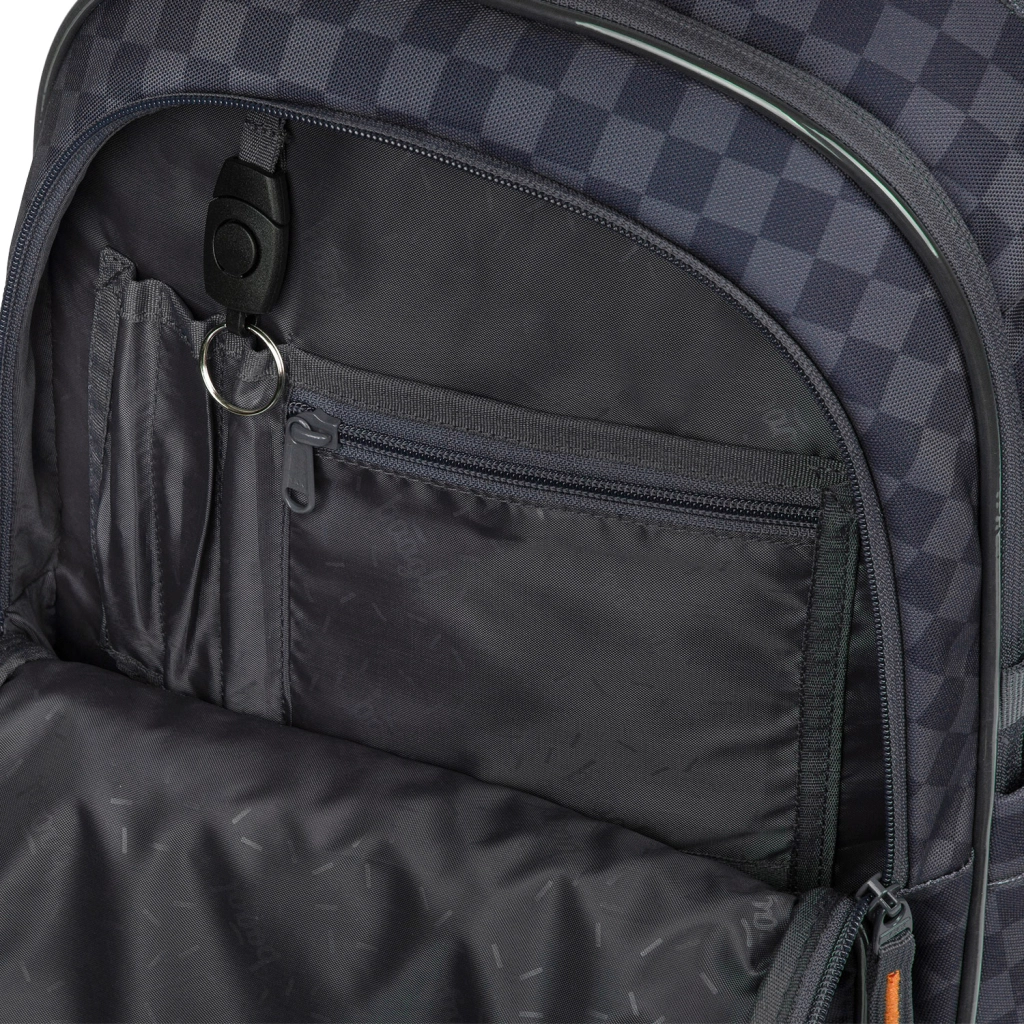 Drie aparte compartimenten, een interne organizer en een gewatteerd laptopvak houden schriften, boeken en elektronica veilig en overzichtelijk op hun plek.