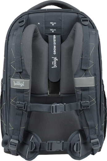 De BAAGL Skate Max Wave GRS is een doordachte rugzak voor leerlingen en studenten met een lengte van 135–185 cm. Dankzij het schuifbare rugsysteem groeit hij comfortabel mee in vier maten. De constructie met EVA-versteviging houdt de vorm uitstekend, de afneembare heupgordel verhoogt de stabiliteit en ergonomisch gevormde schouderbanden met fijne mesh beschermen de nekzone.