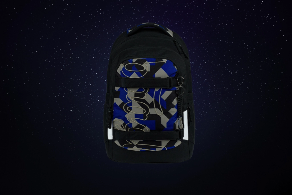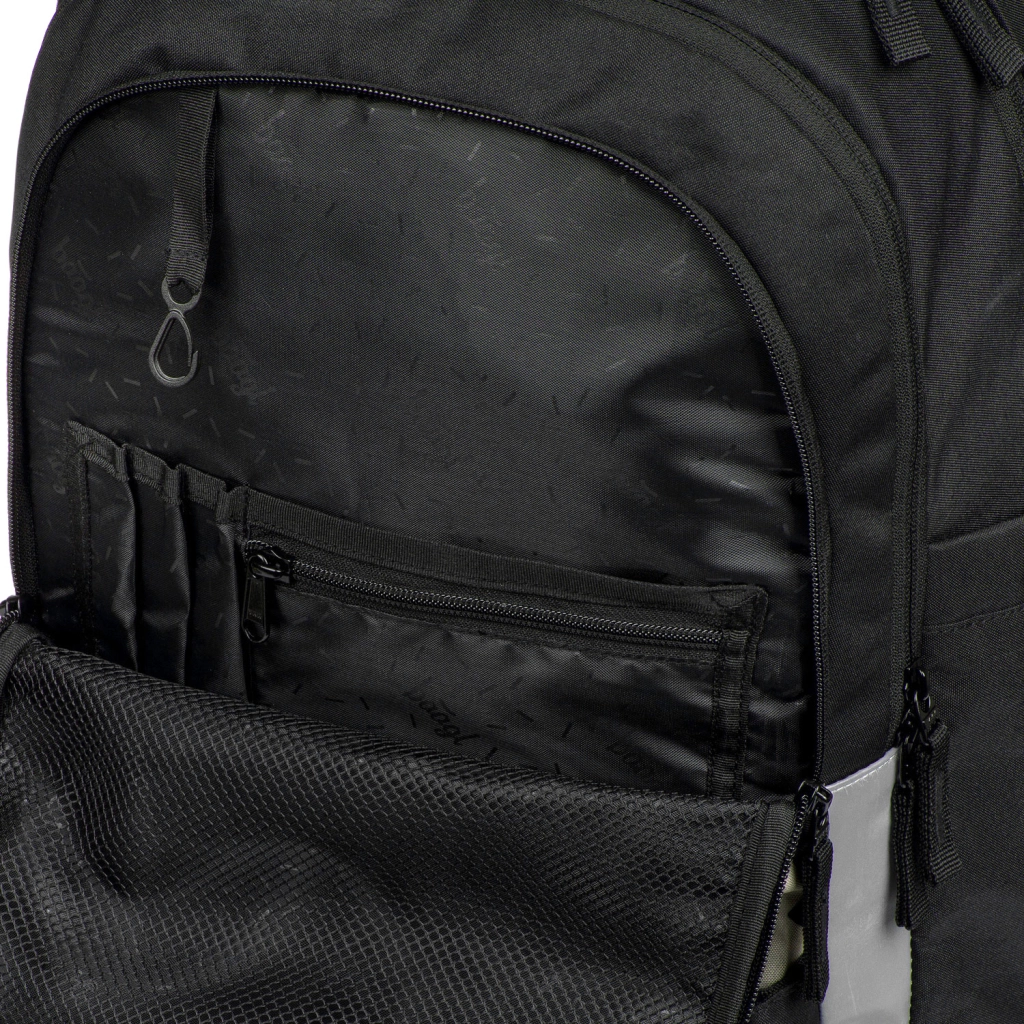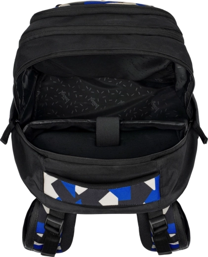 De driedelige indeling van de rugzak omvat een fluwelen laptopvak, praktische YKK-tweerichtingsritsen en zijvakken voor een fles. De interne organizer houdt schoolspullen netjes geordend, terwijl de etui met dubbele uitklapflap en binnenvak ruimte biedt voor schrijfgerei (geleverd zonder inhoud). De gymsack met stevige trekkoorden is geschikt voor schoenen of sportspullen en kan op de rug worden gedragen.