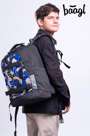 De BAAGL Skate Max Variety schoolset is een ideale keuze voor leerlingen vanaf groep 5 en studenten tot een lengte van 185 cm. De lichte rugzak (1150 g) met verstelbaar rugsysteem is aan te passen in vier maten, heeft een afneembare heupgordel, EVA-schuimversteviging en een verstevigd handvat met een draagvermogen tot 8 kg. Het gerecyclede, waterbestendige materiaal en de reflecterende elementen zorgen voor duurzaamheid en veiligheid onderweg naar school.