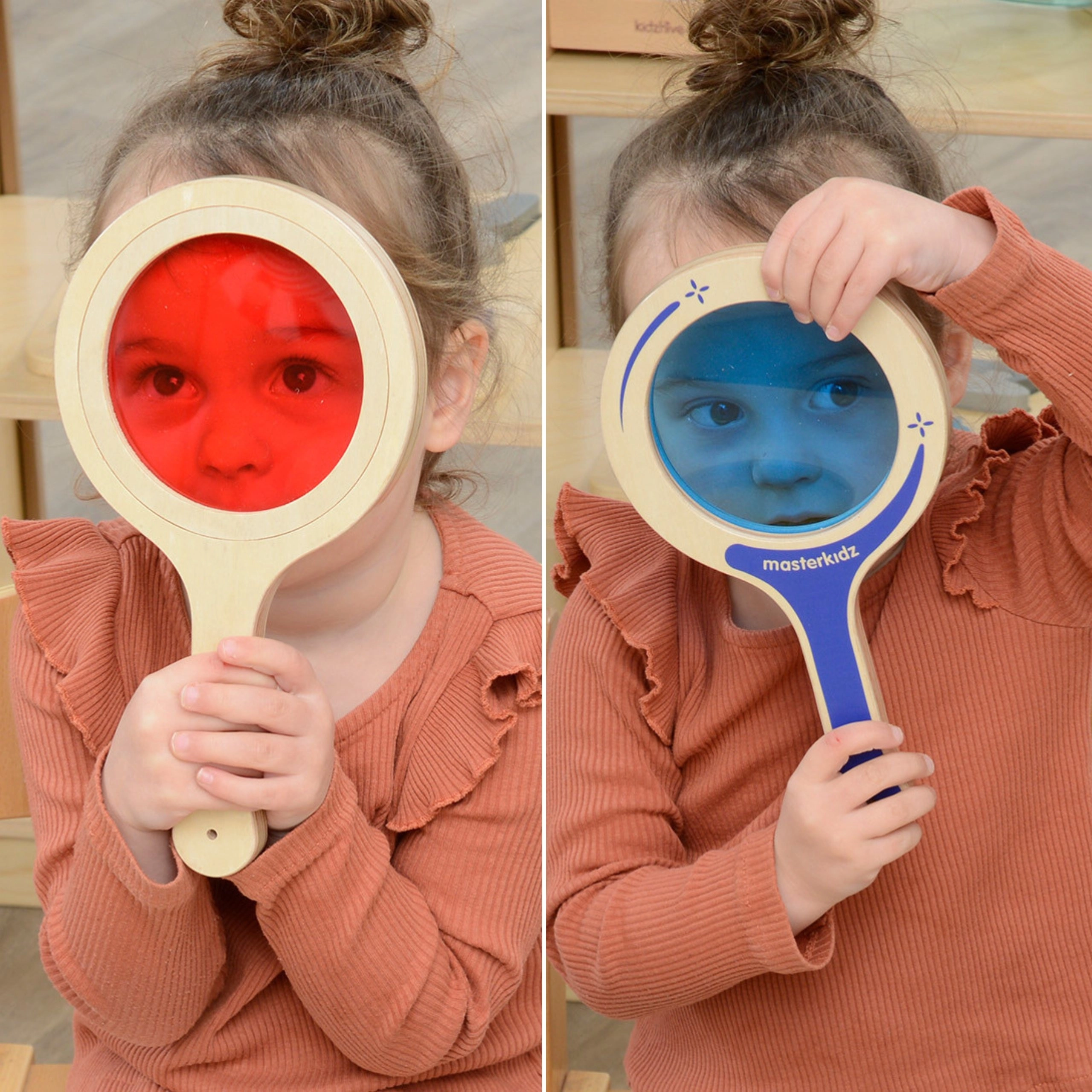 Het lichte en duurzame spiegeltje helpt kinderen gezichtsuitdrukkingen na te bootsen, gevoelens te benoemen en sociaal-emotionele vaardigheden via spel te ontwikkelen.