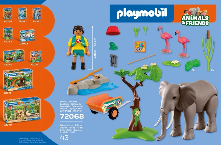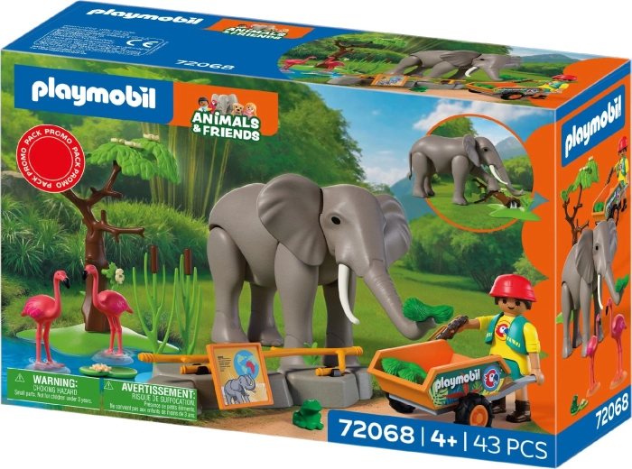 Ontdek de speelse ZOO-wereld met de set PLAYMOBIL Animals & Friends, waar een majestueuze olifant leeft in een verblijf met flamingo’s en een kleine kikker. De beweeglijke olifant kan ledematen bewegen, voedsel oppakken met zijn slurf en zelfs een boom omver duwen, wat het spel realistisch en spannend maakt. De verzorgster brengt vers voer op een kruiwagen en observeert de dieren met een verrekijker. Er is ook een waterbak, groenvoorziening en tal van accessoires voor eindeloze verhalen.