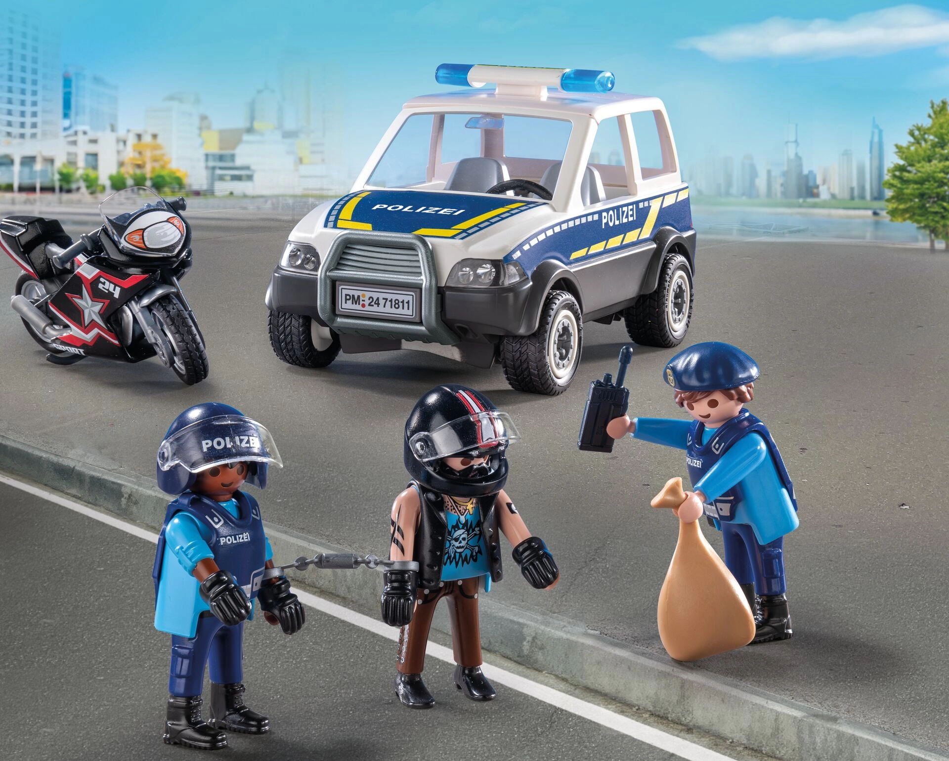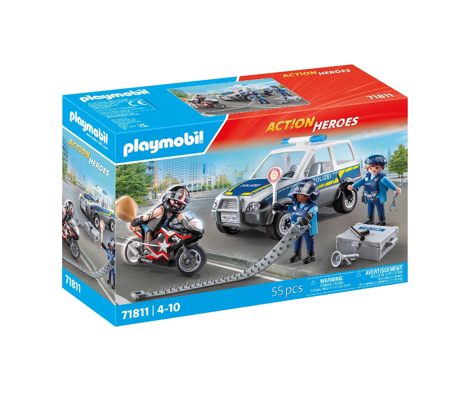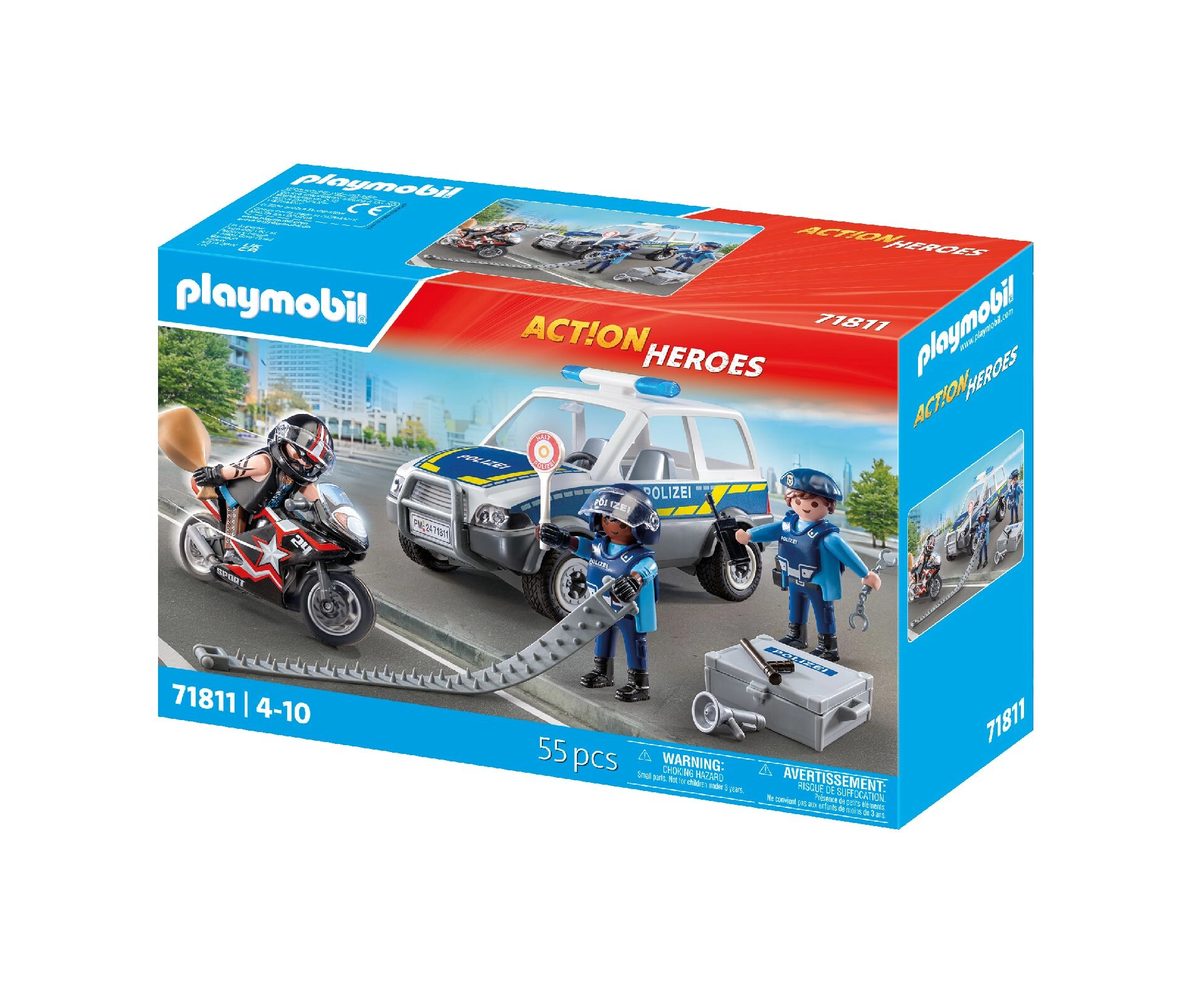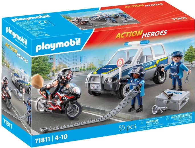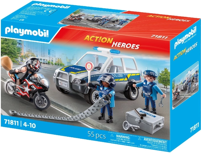 Playmobil City Heroes politieachtervolging – auto, motor en figuren