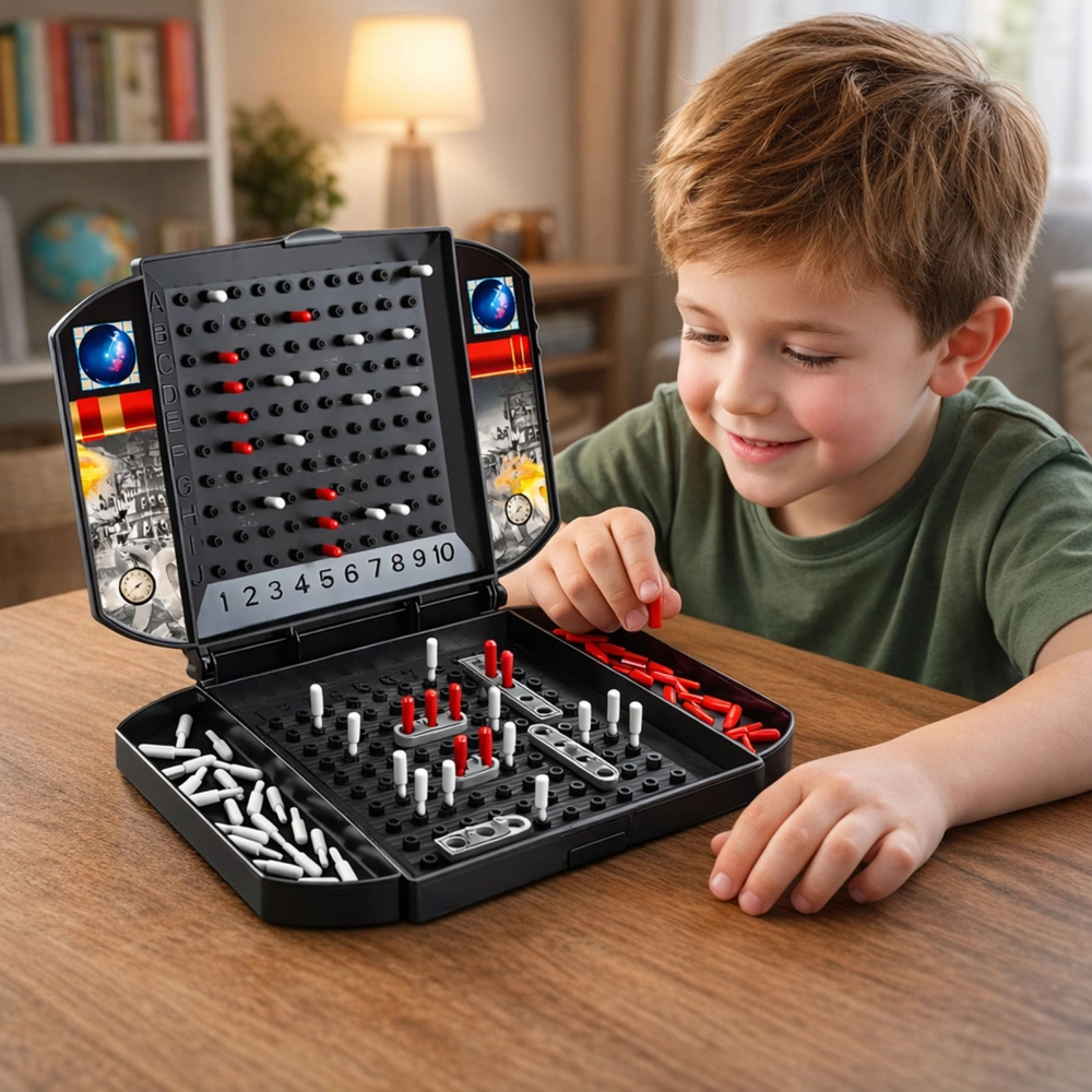 Bouw je vloot op, zoek met tactische coördinaten naar de schepen van je tegenstander en laat ze één voor één zinken. Elke treffer en iedere minuut spanning versterken strategisch denken en het voorspellen van tegenzetjes. Dankzij de afsluitbare constructie worden alle componenten direct in het bord opgeborgen – ideaal voor familieavonden en snelle duels met vrienden.