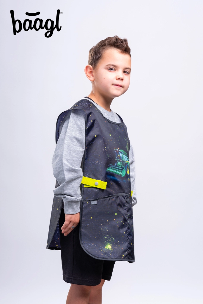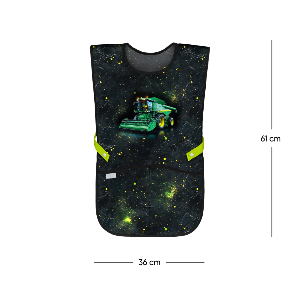 Praktisch kinderkeukenschort van BAAGL met TRACTOR-motief, ideaal voor beeldende vorming, praktische werkzaamheden en vrijetijdsclubs. Biedt een afwasbaar materiaal, twee ruime zakken en een duurzame GRS-certificering voor milieuvriendelijkheid.