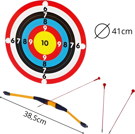 - 1× doel (ca. 41 × 41 cm), 1× kinderboog, 3× pijl met zuignap