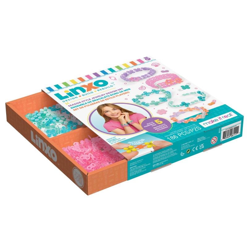De Linxo sieradenset geeft kinderen de mogelijkheid hun eigen stijl te laten zien. Dankzij het slimme kliksysteem kunnen onderdelen eenvoudig worden gecombineerd, in lengte worden aangepast en op elk moment weer uit elkaar gehaald en opnieuw opgebouwd. Maak unieke armbanden, hangers en kleine versieringen die je kunt mixen en layeren.