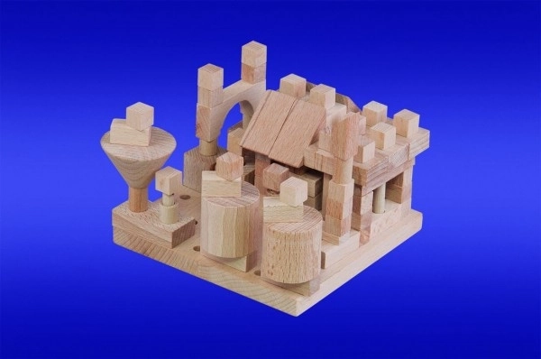 De houten bouwset Detoa Kleine architect is een ideale keuze voor jonge bouwers. Dankzij de verschillende vormen en groottes van de onderdelen kunnen kinderen eindeloos variëren met bouwwerken en patronen. De basisplaat met voorgeboorde gaten en staven vergemakkelijkt het stapelen en bevordert nauwkeurigheid en geduld.