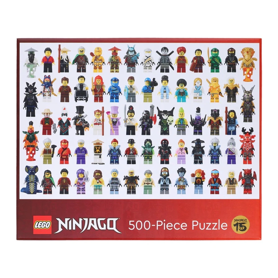 Geniet van uren plezier met de LEGO NINJAGO-puzzel van 500 stukjes, die een iconische collage vormt met meer dan 60 minifiguren uit vijftien jaar aan verhalen. Ideaal voor LEGO-fans, gezellige familieavonden en als cadeau. Inclusief een sleutel met namen van de personages voor het eenvoudig herkennen van je favoriete helden.