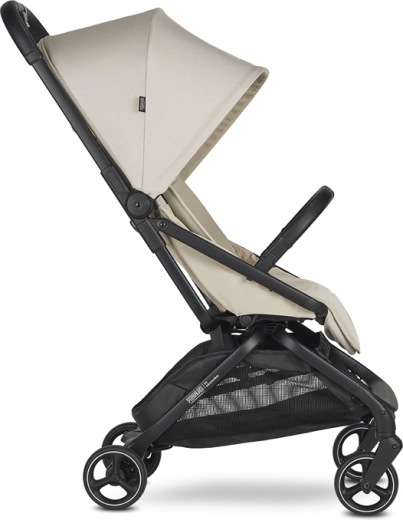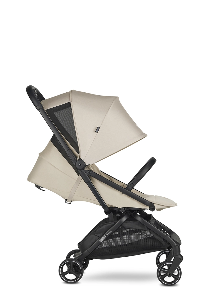 De uittrekbare zonnekap met ventilatie aan de zijkanten beschermt bij elk weertype. Het compacte frame en de zwenkbare voorwielen maken manoeuvreren eenvoudig.