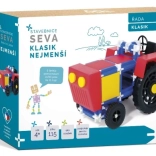 Seva Klasik is een creatief bouwpakket ontworpen voor de jongste bouwers, waarmee kinderen hun technisch denken en handvaardigheid kunnen ontwikkelen. In de verpakking vind je een praktische handleiding die het bouwen van de tractor vergemakkelijkt. De variabiliteit van het bouwpakket maakt het mogelijk om verschillende modellen te bouwen zoals functionele voertuigen, machines, vliegtuigen, gebouwen of meubels.