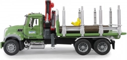 Het robuuste model van de BRUDER MACK GRANITE vrachtwagen is ideaal voor realistisch spel rond houtkap en -transport. De transparante voorruit van onbreekbaar polycarbonaat, de openende cabine en de motorkap met zicht op de motor geven het model een authentieke uitstraling. Voor stabiliteit tijdens het laden zorgen de uitschuifbare steunpoten, terwijl de draaibare kraan met grijper eenvoudig te bedienen is.