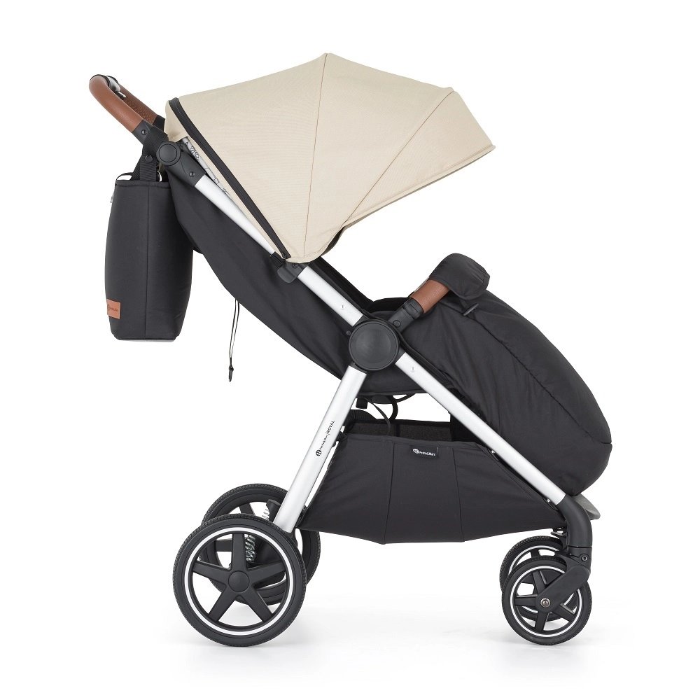 Voor maximaal comfort heeft de buggy een lange rugleuning, traploze verstelling bijna tot ligstand en een verlengde kap met klep en SPF 50 met een stijlvolle voering. De praktische uitrusting wordt gecompleteerd door een ruime boodschappenmand, een verzorgingstas en een beenwarmer. Hoezen met waterafstotende afwerking en het naar binnen vouwen helpen de buggy schoon te houden.