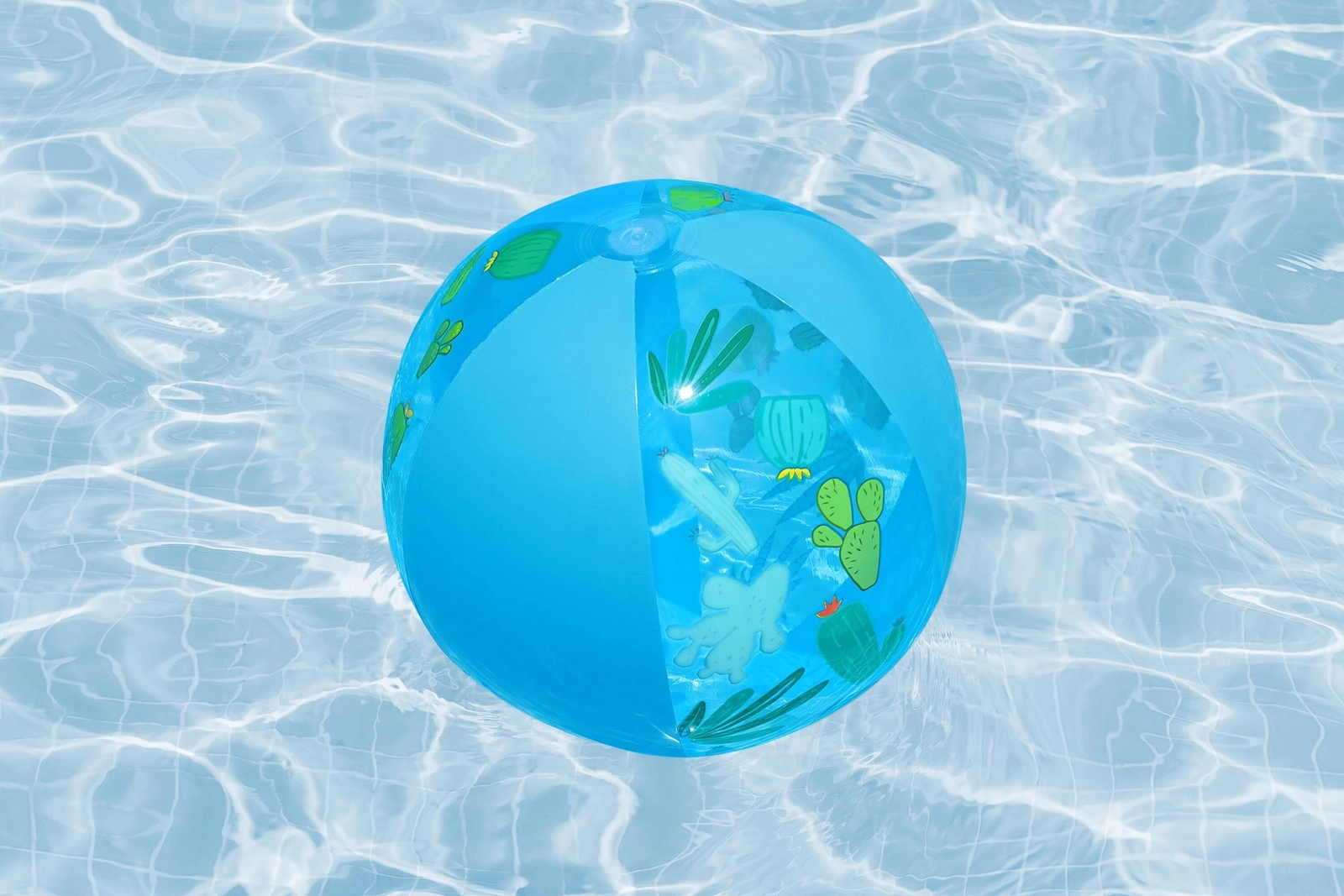 De opblaasbare bal van BESTWAY met een diameter van 51 cm is een perfecte keuze voor waterspelen, strandactiviteiten en zomervakanties. Dankzij de lichte constructie van duurzaam PVC is hij gemakkelijk mee te nemen, snel op te blazen en blijft hij uitstekend drijven. Transparante panelen met gekleurde tropische prints (fruit, bloemen, cactussen) geven elk spel een speelse twist.