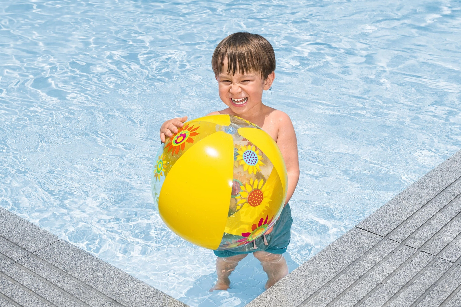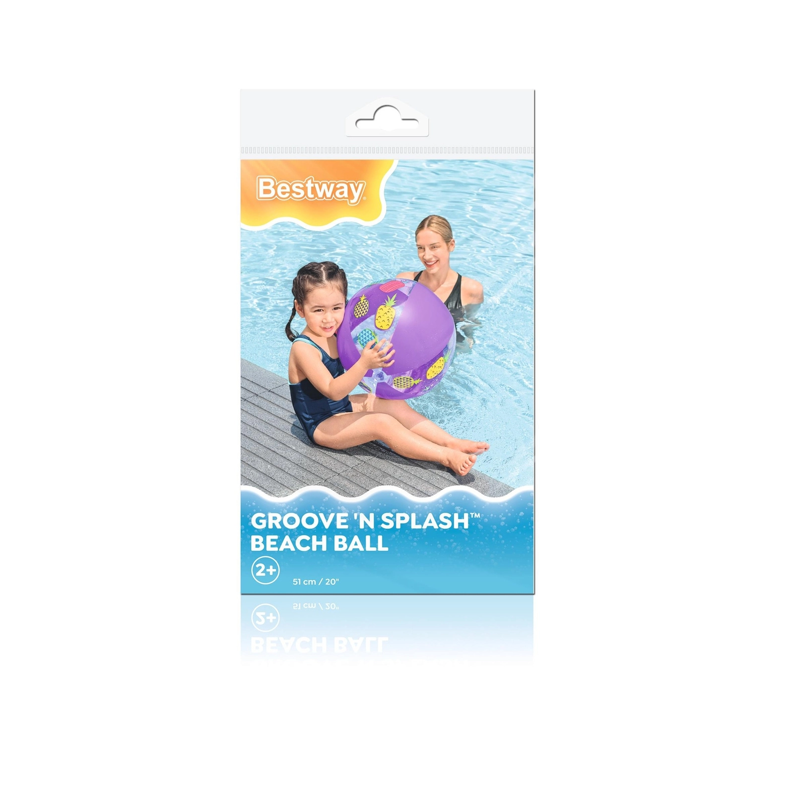 Geniet van de zomer met de opblaasbare strandbal van BESTWAY met een diameter van 51 cm. Licht, duurzaam en ideaal voor zowel zwembad als strand. Dankzij het veiligheidsventiel en het vooraf geteste vinyl biedt hij betrouwbare pret voor kinderen en volwassenen. Drie heldere tropische motieven zorgen voor uitstekende zichtbaarheid in het water.
