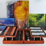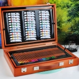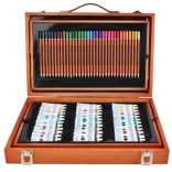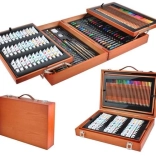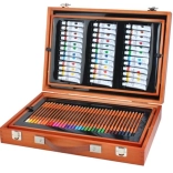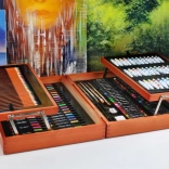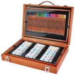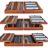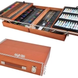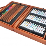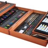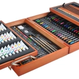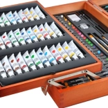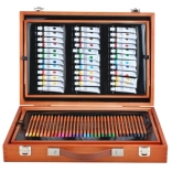 Grote tekenset met 177 stuks, ideaal voor kleine en grote kunstenaars. Dankzij de stevige houten koffer met sluitingen blijft alles op zijn plaats, wat zorgt voor een veilige transport.