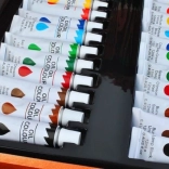 Ieder artistiek gereedschap heeft zijn plaats in de stevige koffer met sluitingen, die stabiliteit verzekeren.