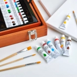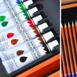 Verrijk je artistieke uitrusting met deze geweldige schilderkit met kleurpotloden, markers, aquarellen en olieverven. Krijg kwaliteit en duurzaamheid dankzij de stevige houten koffer met praktische handgreep en sluitingen voor gemakkelijk transport en veilige opslag. Ieder element heeft zijn plek, wat garandeert dat alles georganiseerd en klaar voor gebruik blijft.