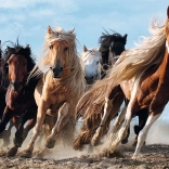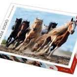 Geniet van een puzzel die, eenmaal voltooid, een adembenemend tafereel van galopperende paarden vastlegt. De afmetingen van het eindresultaat zijn 68 x 48 cm, ideaal voor het weergeven van de details van deze dynamische scène.