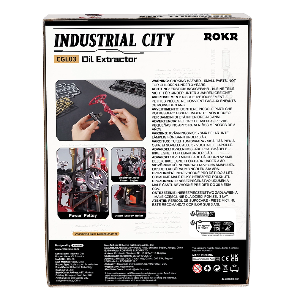 Het model maakt deel uit van de Industrial City-serie en wordt na montage een in het oog springende bewegende decoratie en een leermiddel voor mechanica. Dankzij de gemiddelde moeilijkheidsgraad spreekt het zowel beginners als gevorderde bouwers aan. Voeding via USB zorgt voor een stabiele werking zonder zorgen over batterijen.
