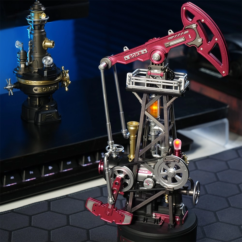 Stap de industriële era binnen met een gedetailleerde 3D-puzzel van een oliepomp, met realistische slingerende armbeweging, werkende tandwielen met zuigermechanisme en sfeervolle LED-verlichting. Het model in industriële stijl wordt gevoed via USB, heeft 127 onderdelen en een gemiddeld moeilijkheidsniveau, waardoor het perfect is als decoratie, cadeau en verzamelobject voor zowel kinderen vanaf 14 jaar als volwassenen.